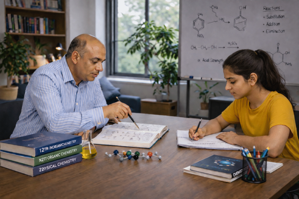 Whether you are looking for a Class 12 Chemistry home tutor or the best online Chemistry classes for Class 12, our teaching approach focuses on concept clarity, NCERT-based preparation, chapter-wise revision, and exam-oriented writing practice.